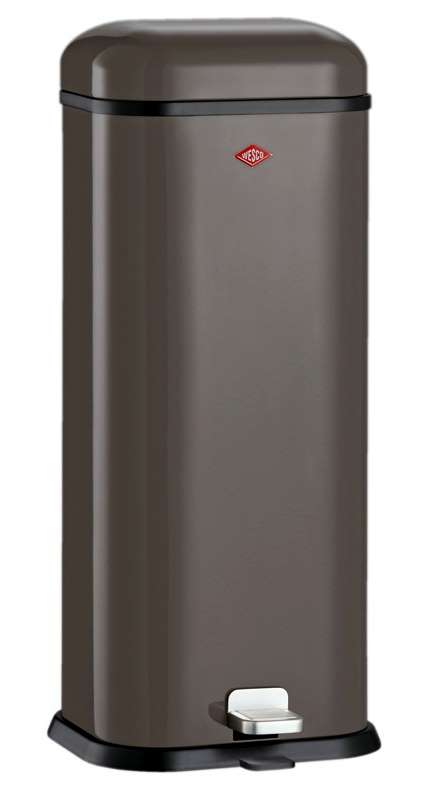 Ein hoher Tret-Mülleimer 20 Liter warmer Grauton in der Ausführung Tretmülleimer mit Inneneimer aus Kunststoff und stabilem Pedal. Die rechteckige Form passt sich Wänden und Ecken für eine optimale Platznutzung an. Durch den eingebaute Dämpfer schließ der Deckel nahezu geräuschlos.